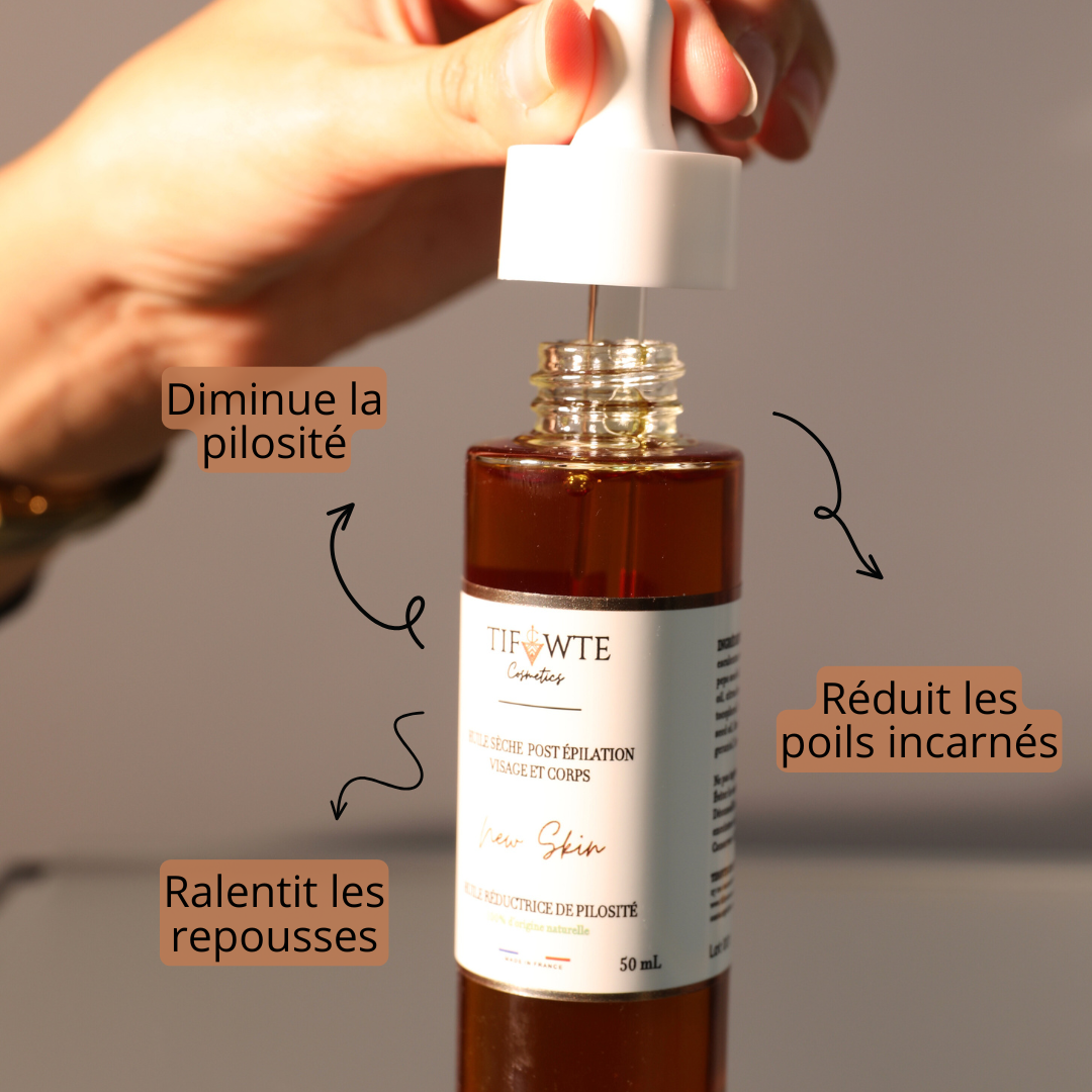 L'Huile Sèche et la Crème Onctueuse NEW SKIN sont des formulations uniques développées en laboratoire selon des recettes ancestrales